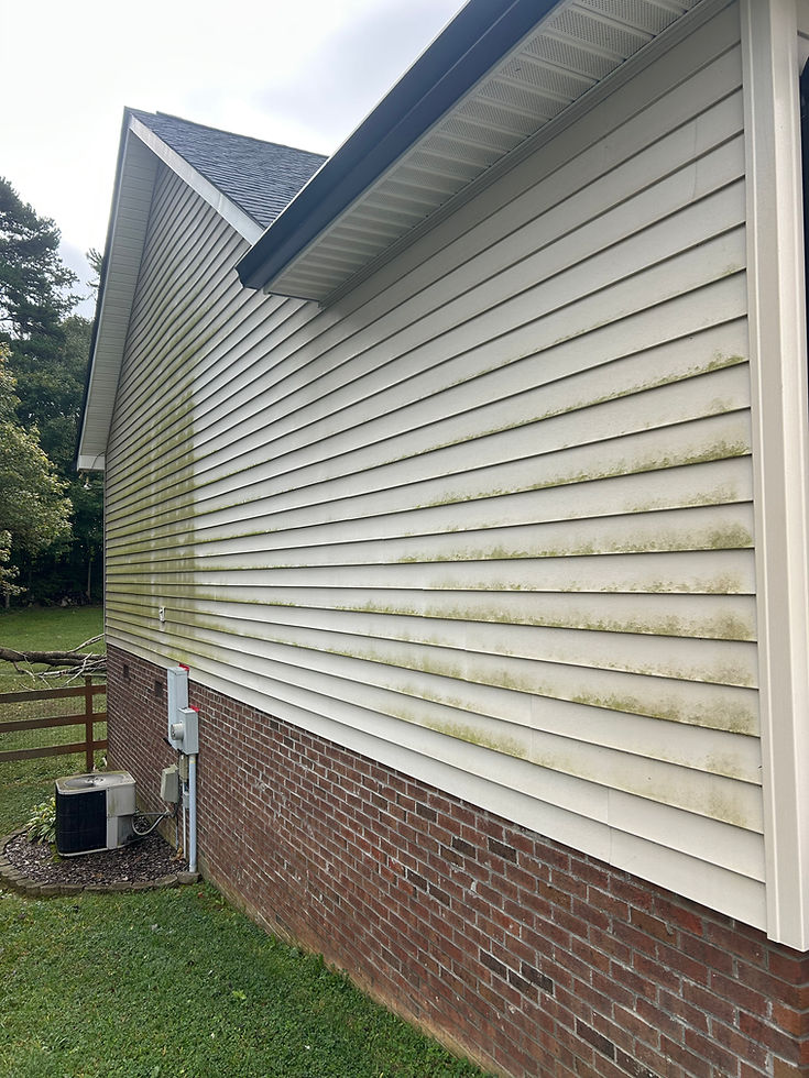 Our house washing service uses a low-pressure soft wash system to safely clean siding, brick, stucco, and more. This method eliminates: